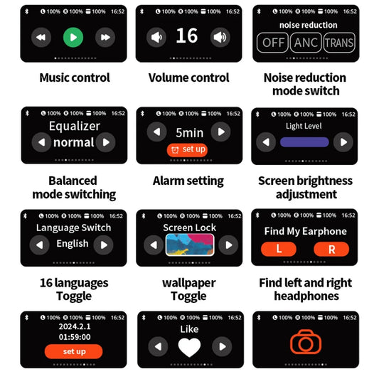TWS Bluetooth Headphones Wireless Bluetooth Headset ANC Earphone Multiple Languages LED Visible Tactile