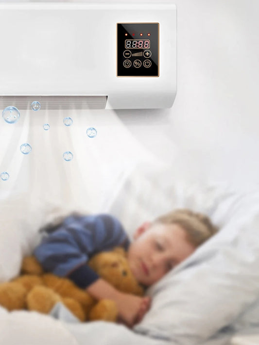 Dual-use heating and cooling mobile small air conditioning hot fan bathroom heater Household bedroom wall mounted electric heater heater (remote control with built-in battery)