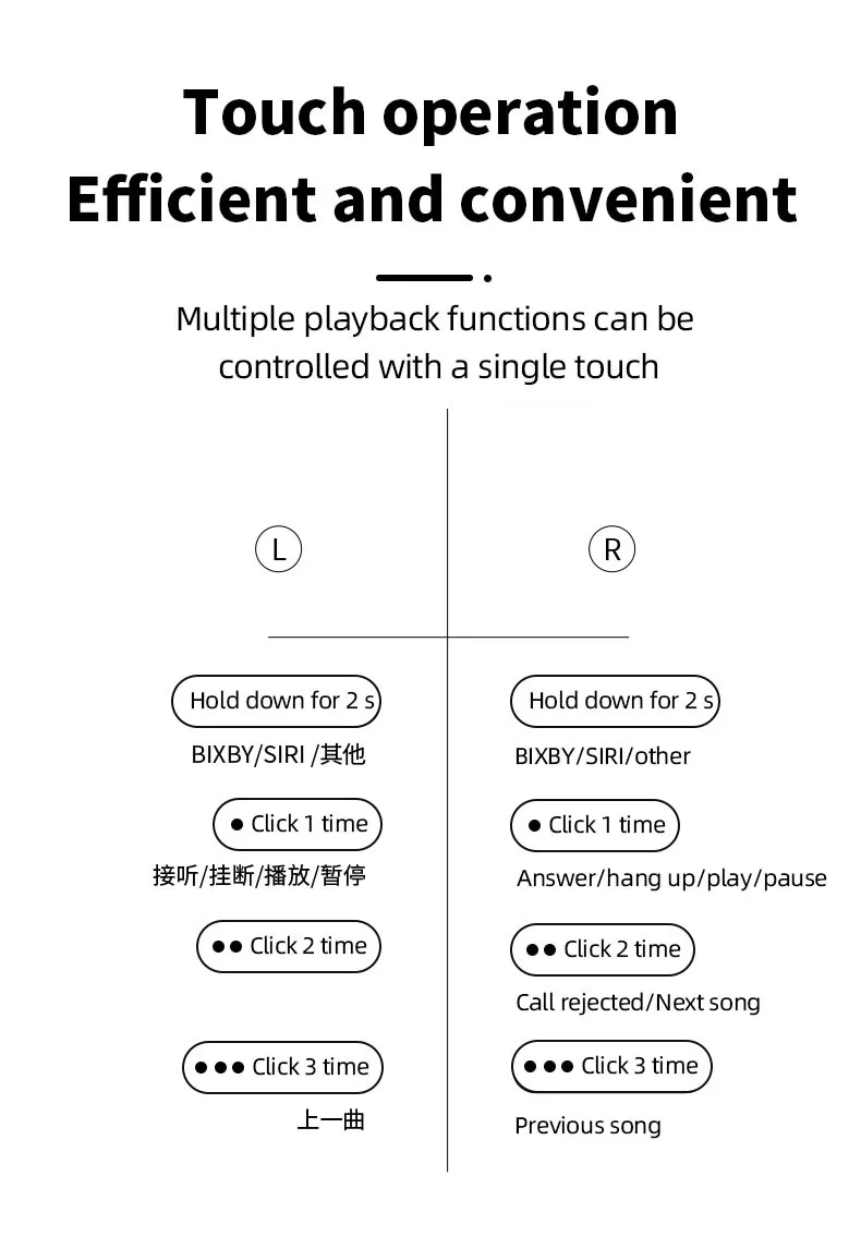 TWS Bluetooth Headphones Wireless Bluetooth Headset ANC Earphone Multiple Languages LED Visible Tactile